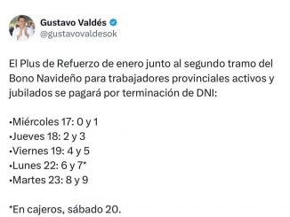 El gobernador Gustavo Valdés comunicó este lunes que el cronograma de pago en simultáneo del segundo tramo del Bono Navideño, de $100.000 por agente, y […]