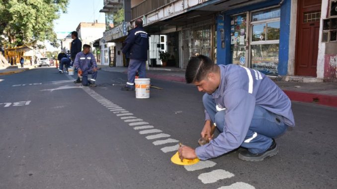 Con el objetivo de mejorar la señalización vial de una de las arterias más transitada por autos y diversas líneas del transporte público, la Secretaría de Movilidad Urbana y Seguridad inició la correspondiente pintura sobre cordones, instalación de señalética y tachas reflectivas en el centro de la calzada de la calle La Rioja.