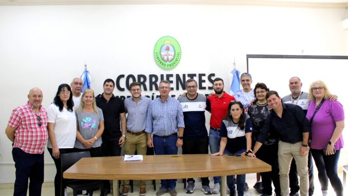 La cita tuvo lugar en sede de Secretaría de Deportes, con participación del titular del área, Jorge Terrile, los delegados de la flamante Secretaría Provincial de Newcom: Rosa Puchetta y Rubén Galarza.