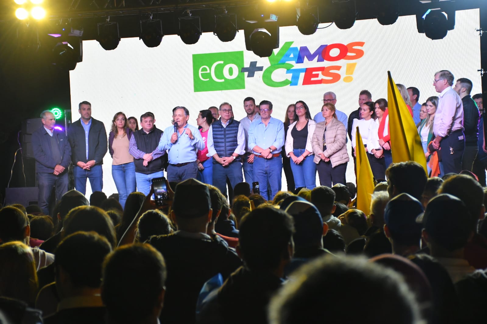 La alianza gobernante ECO+Vamos Corrientes reunió este miércoles a la noche en el barrio Laguna Seca a más de 3 mil personas que fueron a apoyar a los candidatos que el 11 de junio representarán a la continuidad del modelo de desarrollo impulsado por el gobernador Gustavo Valdés. Con el vicegobernador Pedro Braillard Poccard y el intendente Eduardo Tassano encabezando el acto en el polideportivo frente al Colegio «Arturo Illia», los aspirantes a renovar los parlamentos comunal capitalino y provincial expresaron así su compromiso de apoyar las actuales gestiones provincial y municipal como enclave fundamental para que el 11 de junio desde Corrientes surja «el mensaje de que se viene el cambio en el país».