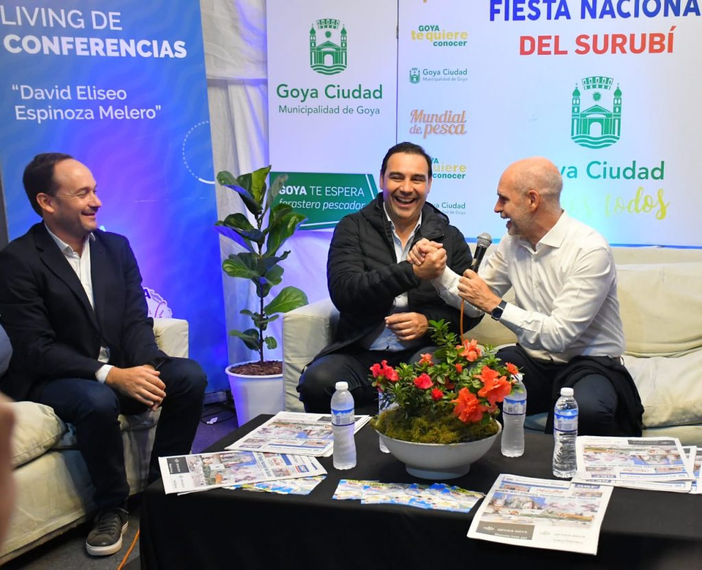 El gobernador Gustavo Valdés recibió este viernes en la ciudad de Goya al jefe de Gobierno de la Ciudad Autónoma de Buenos Aires, Horacio Rodríguez Larreta, quien llegó a la localidad para presenciar la 46° Fiesta Nacional de la Pesca del Surubí (Mundial de Pesca). Allí ambos destacaron el potencial turístico de la provincia de Corrientes y el alcalde porteño prometió obras y vuelos internacionales, si es el próximo Presidente de la Nación, para que los atractivos correntinos tengan más impulso. Y entre estos compromisos, garantizó las defensas costeras de Goya.