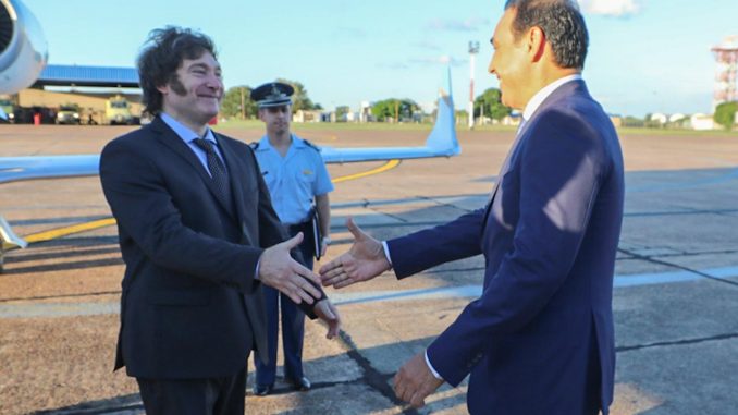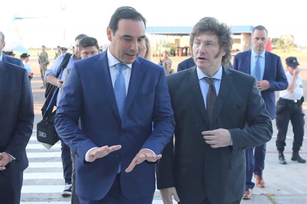 El presidente de la Nación, Javier Milei arribó este lunes a las 19 al aeropuerto internacional Piragine Niveyro de la ciudad de Corrientes. Allí lo recibió el gobernador Gustavo Valdés acompañado por el intendente de la Capital provincial, Eduardo Tassano, quienes le entregaron al jefe de Estado, declaraciones de Huesped de Honor, mediante los respectivos decreto y resolución municipal.