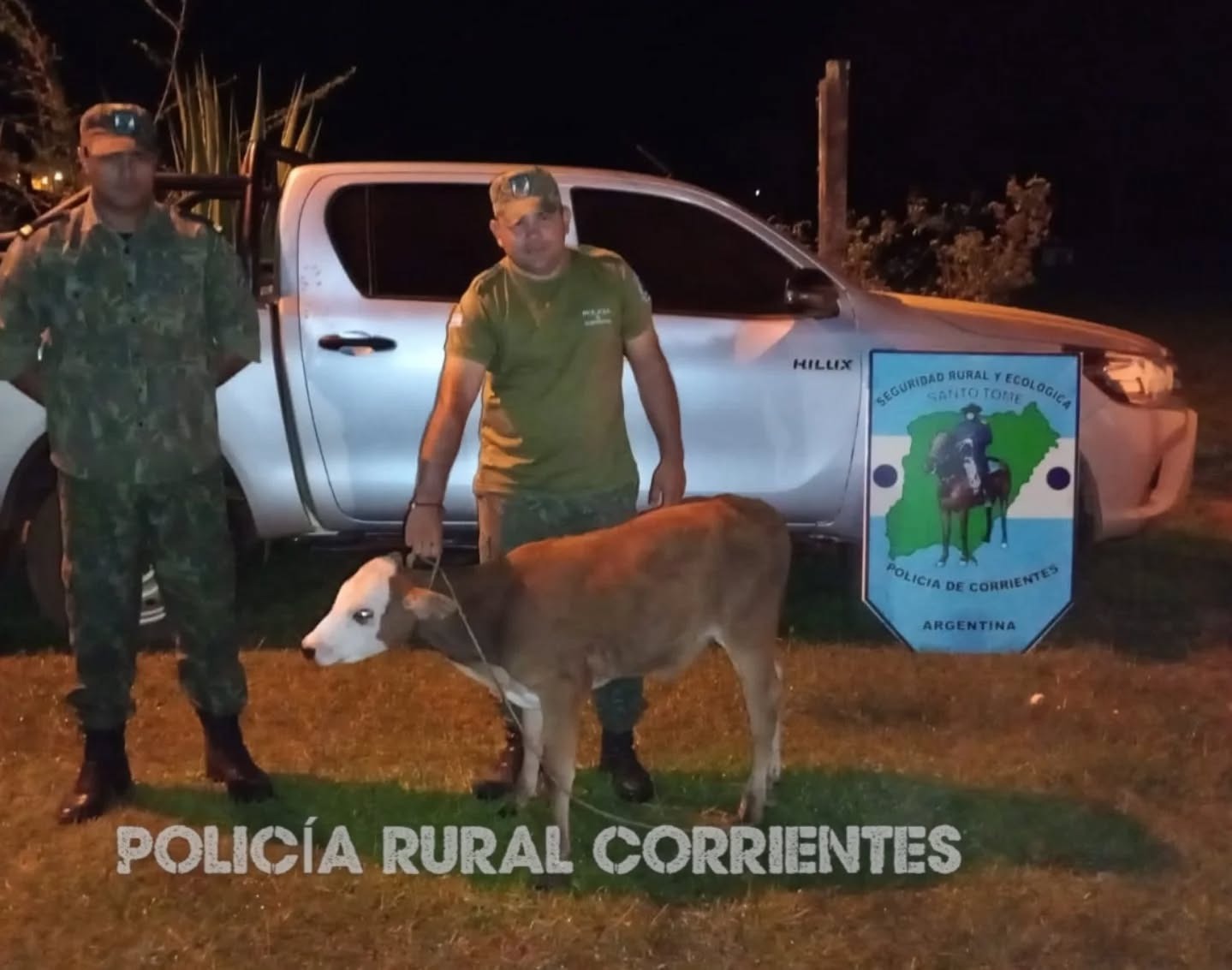 Se iniciaron actuaciones por supuesta infracción al Art. 206 del C.P.A., procediéndose al secuestro de la camioneta y del ternero, que fue trasladado a un corral de la Sociedad Rural de Santo Tomé, mientras continúan las actuaciones del caso.