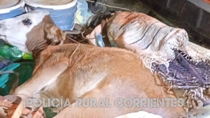 La camioneta era conducida por Juan Carlos P. (64), acompañado por José Martínez Sosa (59) y Juan Carlos D. (29). Los hombres dijeron que habían retirado el animal de la estancia “Recreo Cue” porque su madre estaba muy flaca y no podía alimentarlo.
