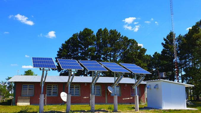 En escuelas rurales, se han instalado paneles fotovoltaicos con su correspondiente sistema eléctrico, junto con banco de baterías e instalación eléctrica de lámparas eficientes para el interior y exterior; con ello se deja a las escuelas en condiciones de asegurar la conectividad de las mismas.