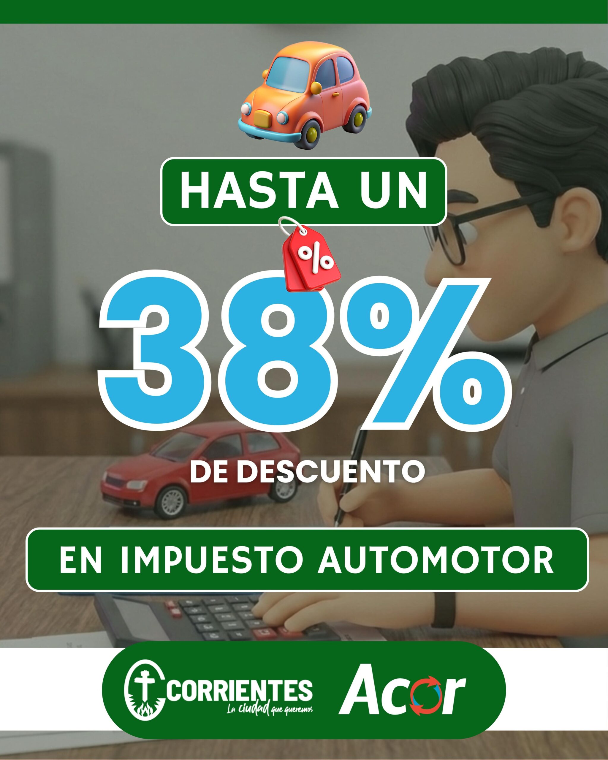 La Agencia Correntina de Recaudación (ACOR) señaló que los que se sumen al Pago Anual Anticipado hasta el 10 de febrero del 2026 tendrán un descuento de hasta el 38% en el impuesto automotor y del 23% en el impuesto inmobiliario. En el caso de los cementerios, aquel vecino que es destacado y buen contribuyente podrá acceder a un descuento de hasta el 50%.