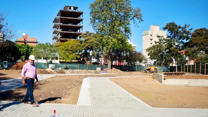 La intervención comprende 4.340m2, y está enmarcado entre las veredas existentes de borde sobre calle Junín, Pago Lago, la avenida Costanera y la vereda diagonal que se presenta de este a oeste.