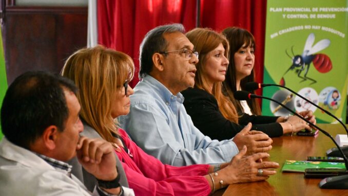 Este jueves se presentó el Plan de prevención y control del Dengue que se llevará a cabo en todo el territorio provincial. Fue mediante un acto en el Hospital de Campaña encabezado por el ministro de Salud, Ricardo Cardozo y demás autoridades. Sus objetivos generales comprenden la prevención a través de acciones de saneamiento y promoviendo la eliminación de los criaderos del mosquito con el fin de disminuir y evitar casos de esta patología.