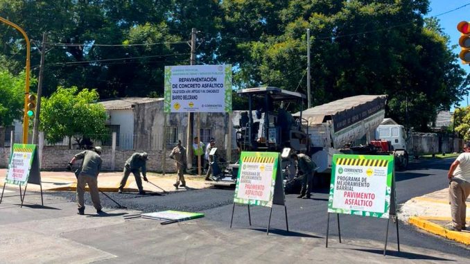 El gobierno Provincial, comenzó la repavimentación con concreto asfáltico de la calle Suiza, entre las avenidas Artigas y Chacabuco, como parte de su programa de asistencia a la comuna capitalina.