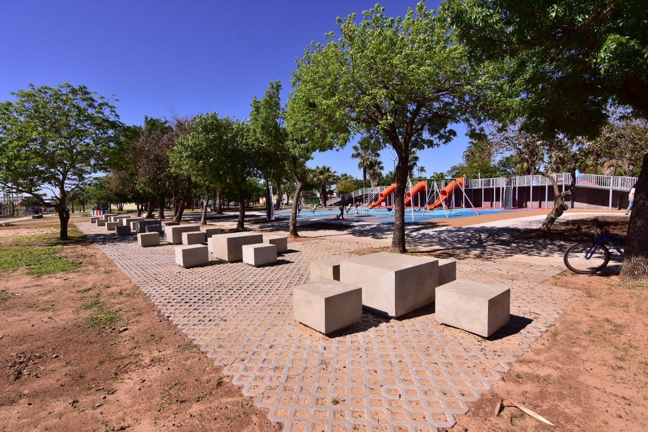 La labor incluyó mejoras en senderos peatonales, veredas inclusivas, con losetas podotactiles, rampas, y nueva iluminación sectorizada led, cestos diferenciados, mesas y bancos para el disfrute y confort de los vecinos.