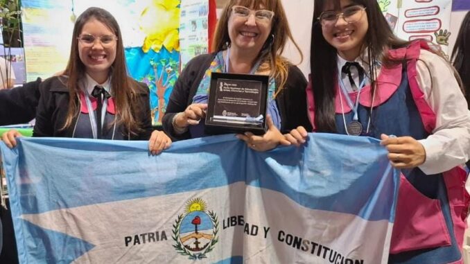 Durante el cierre de la feria, 8 trabajos fueron destacados por la Comisión Nacional de Evaluación, y uno de ellos lo obtuvo Corrientes. Se trató de «Oigo, huelo, toco, siento y veo… Mi lenguaje construyendo» del Intituto Superior de Formación Docente (ISFD) «Jorge Luis Borges», de Santo Tomé. El equipo estuvo integrado por estudiantes del 3° año de Profesorado de Educación Inicial: Breisa Yanina Fontela y Guadalupe Maria Sol Paiva, quienes junto con su profesora Gabriela Sandra Abate recibieron la distinción nacional.