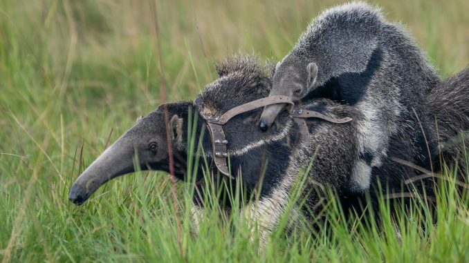 Se registró a la primera cría del quinto núcleo poblacional de oso hormiguero gigante en Yerbalito, al norte del Gran Parque Iberá.