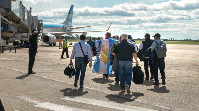 Este viernes a las 15, desde el aeropuerto Piragine Niveyro, partió el contingente de 20 excombatientes correntinos, acompañados por un coordinador y dos periodistas, con destino a las Islas Malvinas, donde permanecerán una semana, en el séptimo viaje de estas características que es organizado por el Gobierno provincial, que impulsa la causa Malvinas como política de Estado.
