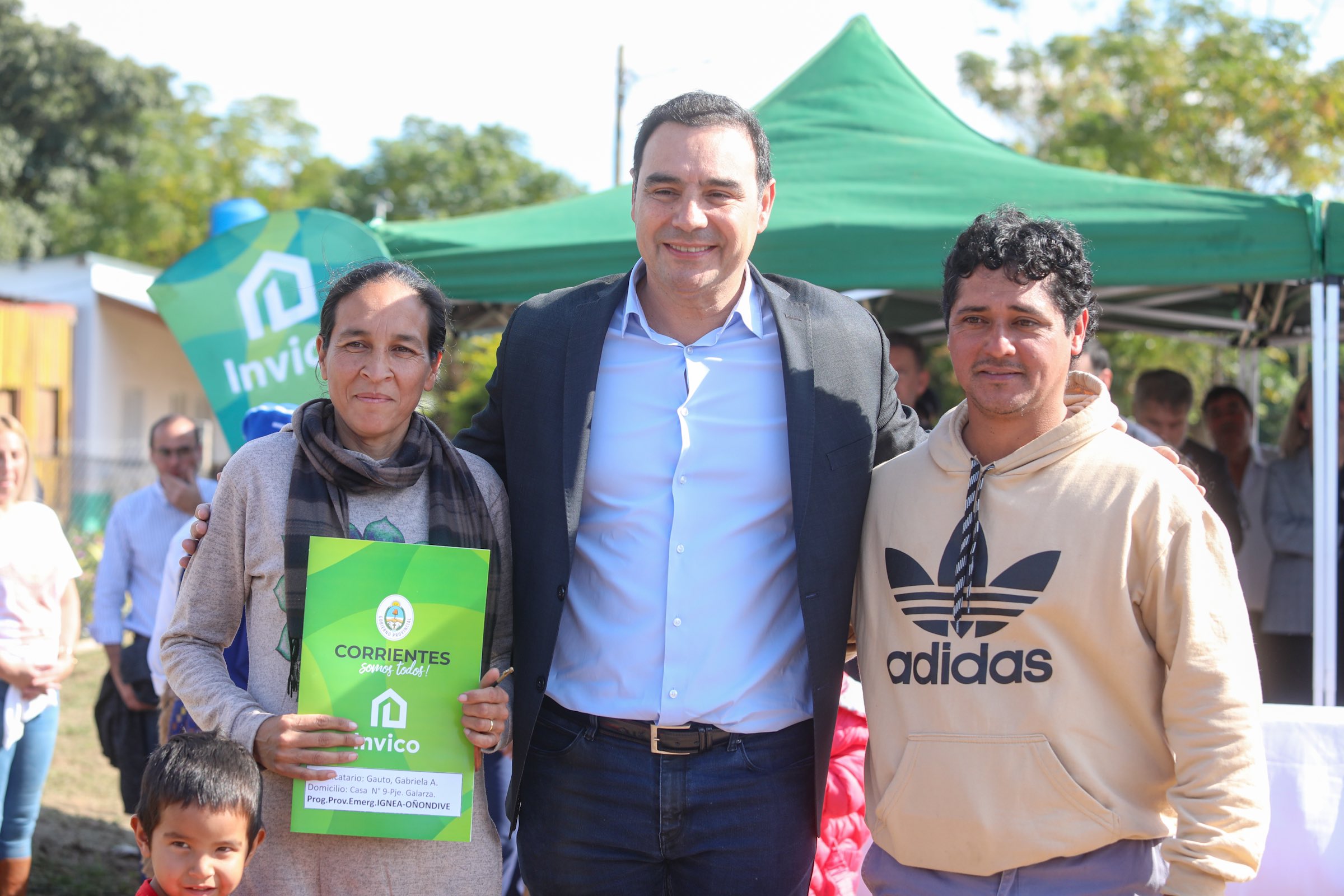Con el objetivo de brindar soluciones habitacionales a los correntinos, el gobernador Gustavo Valdés encabezó este viernes el acto de entrega de 10 viviendas del programa “Oñondivé” en el paraje Galarza, departamento de Santo Tomé, dando inicio de esa manera a su jornada de actividades en el interior provincial.