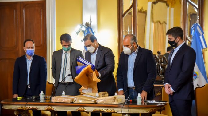 El acto tuvo lugar en el Salón Amarillo de Casa de Gobierno, con la presencia –además- del administrador del Ente Nacional de Obras Hídricas de Saneamiento, Enrique Cresto.