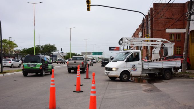 En Río Juramento e Independencia se están instalando cinco jirafas con semáforos, que contarán con controladores electrónicos programables con GPS para mantener la onda verde de la avenida principal de la ciudad, la que es objeto de trabajos de refuncionalización e instalación de nuevas tecnologías por parte de la Municipalidad.
