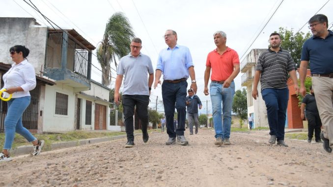 “Estamos siguiendo las obras viales para garantizar que todo el barrio San Gerónimo y todos los vecinos tengan infraestructura vial y cloaca”, indicó el intendente al supervisar las obras que se ejecutan en la zona.