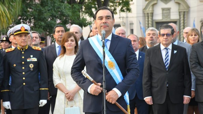 Luego insistió diciendo que “la patria se construye todos los días como la libertad y debemos sostenerla y juntos vamos a poder hacerlo” y apuntó expresando que “aquellos que se quieran adueñar de la República Argentina se equivocan, porque al país lo construyen los pueblos de las provincias y Argentina somos todos”. “Muchos se quieren apropiar de nuestros escudos, pero todos llevamos la patria en el corazón”, sostuvo.