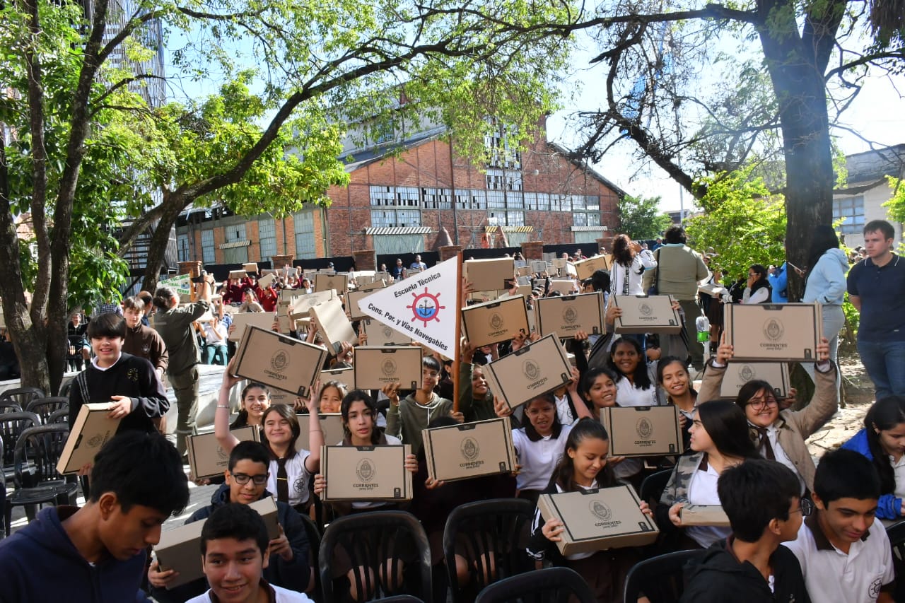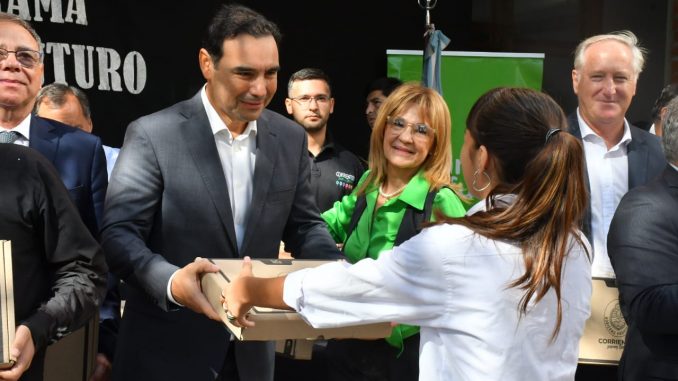 El gobernador de Corrientes, Gustavo Valdés, presidió este viernes la entrega de 414 notebooks del programa «Incluir Futuro» en la Escuela Técnica «Construcciones Portuarias y Vías Navegables» de Capital. En la oportunidad, fueron beneficiadas con los dispositivos el establecimiento anfitrión, las escuelas «Brigadier Pedro Ferré», la Normal «José Manuel Estrada» y el colegio secundario del Barrio Piragine Niveyro.