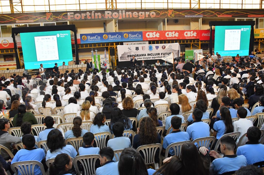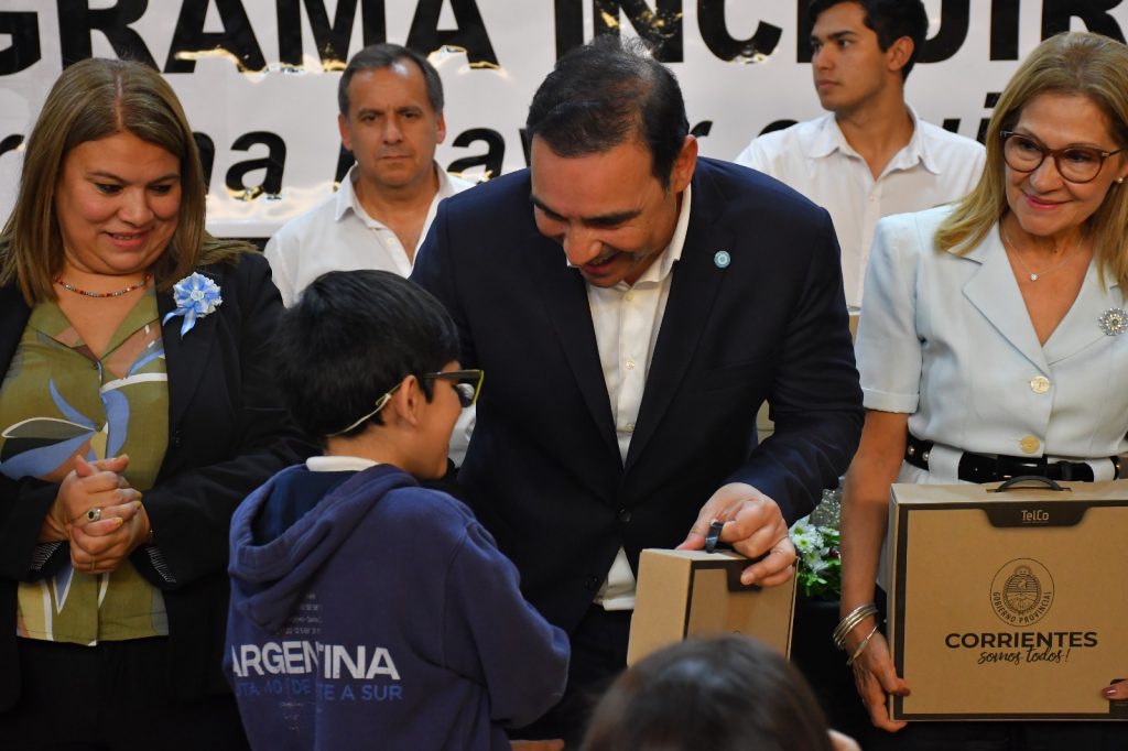 En un acto desarrollado este viernes en el Club San Martín, el gobernador Gustavo Valdés encabezó la entrega de 1.160 notebooks a alumnos de establecimientos secundarios de Capital, en el marco del programa “Incluir Futuro”, que se despliega con una visión de desarrollo para que los mismos aprendan a partir de la plena incorporación de la tecnología en el aula.