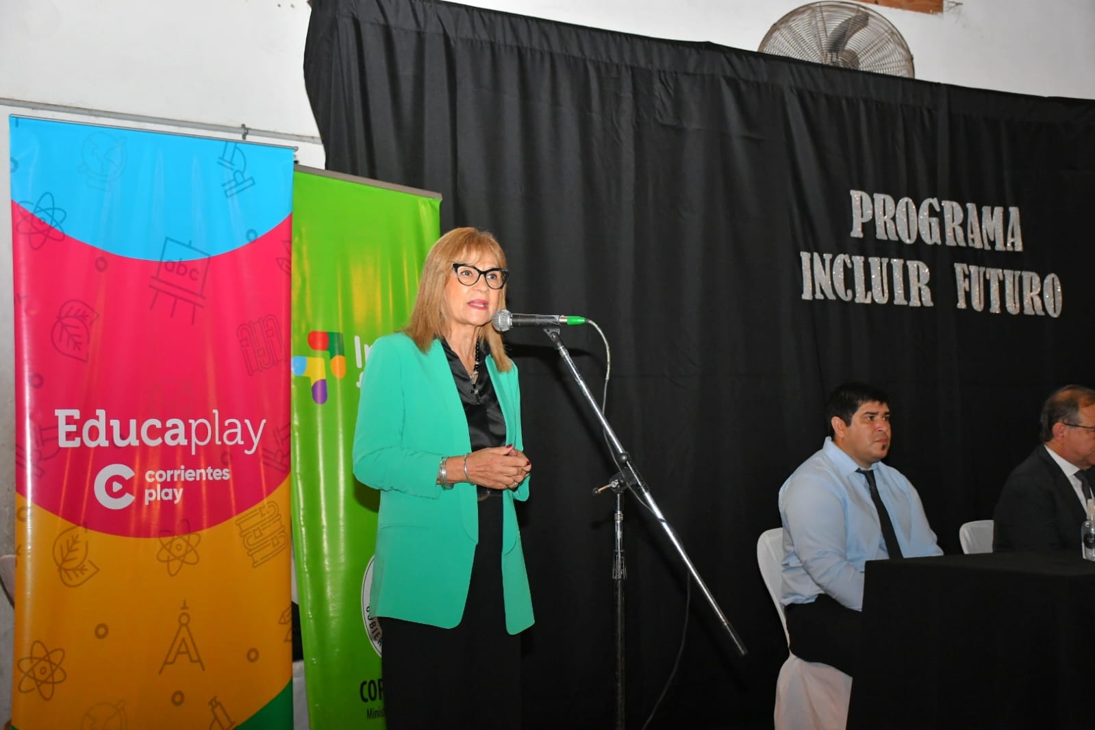 Al momento de hacer uso de la palabra, la ministra Práxedes López indicó que “es un gusto estar realizando la segunda entrega en Capital para los alumnos del segundo año en el 2023” ya que “no es solo es una cuestión de entregar computadoras, sino que consiste en aplicar los conocimientos audiovisuales en las aulas”.
