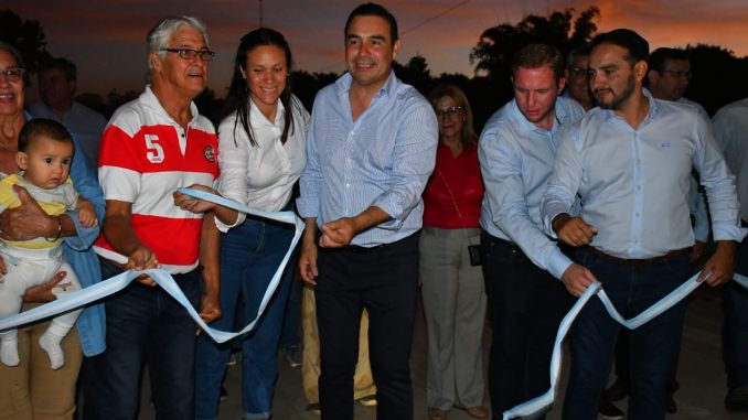 El gobernador y el intendente acompañado de las autoridades presentes y los vecinos efectuaron el tradicional corte de cintas dejando inaugurada la Avenida Santa Fe.