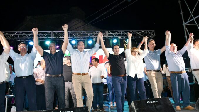 El acto de presentación de candidatos de la alianza Vamos Corrientes en Esquina, que convocó a la militancia de los partidos del oficialismo provincial, se realizó este viernes 3 en la intersección de Mitre y Lamela.